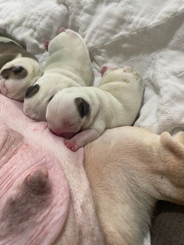 Above all, the most important consideration is the health of the the puppies. We have cared for them as we have cared for our English Bulldog for 30 years. They have already been wormed. They are up to date with all there shots, including Bordetella. Also included is our 1 year limited warranty.